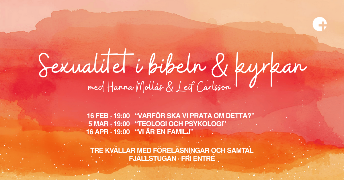 Tre spännande kvällar ligger framför oss med föreläsningar och samtal utifrån temat ”Sexualitet i bibeln & kyrkan” med Hanna Möllås & Leif Carlsson. Fri entré. Skriv in datumen i kalendern och kom!